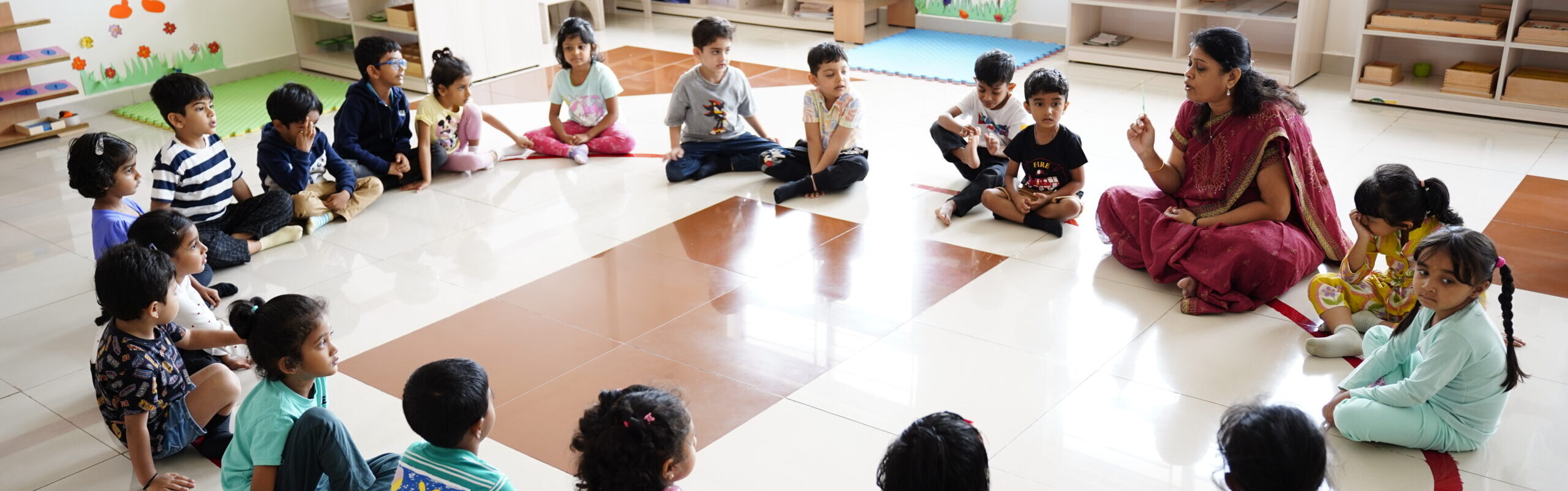Our education philosophy centres on guiding children to learn independently rather than through direct instruction. We achieve this through multi-age classrooms, which foster a family-like environment where older students naturally mentor younger ones, promoting valuable peer to peer leaning. our approach of lettings kids learn through hands-on, self-correcting materials that allow children to discover concepts experientially and learn from their mistakes builds their confidence and problem solving ability, this approach is dedicated to the holistic development of each child—nurturing their physical, social, emotional, and cognitive growth through an interconnected curriculum that includes practical life skills, sensorial exploration, language, mathematics, and cultural studies.